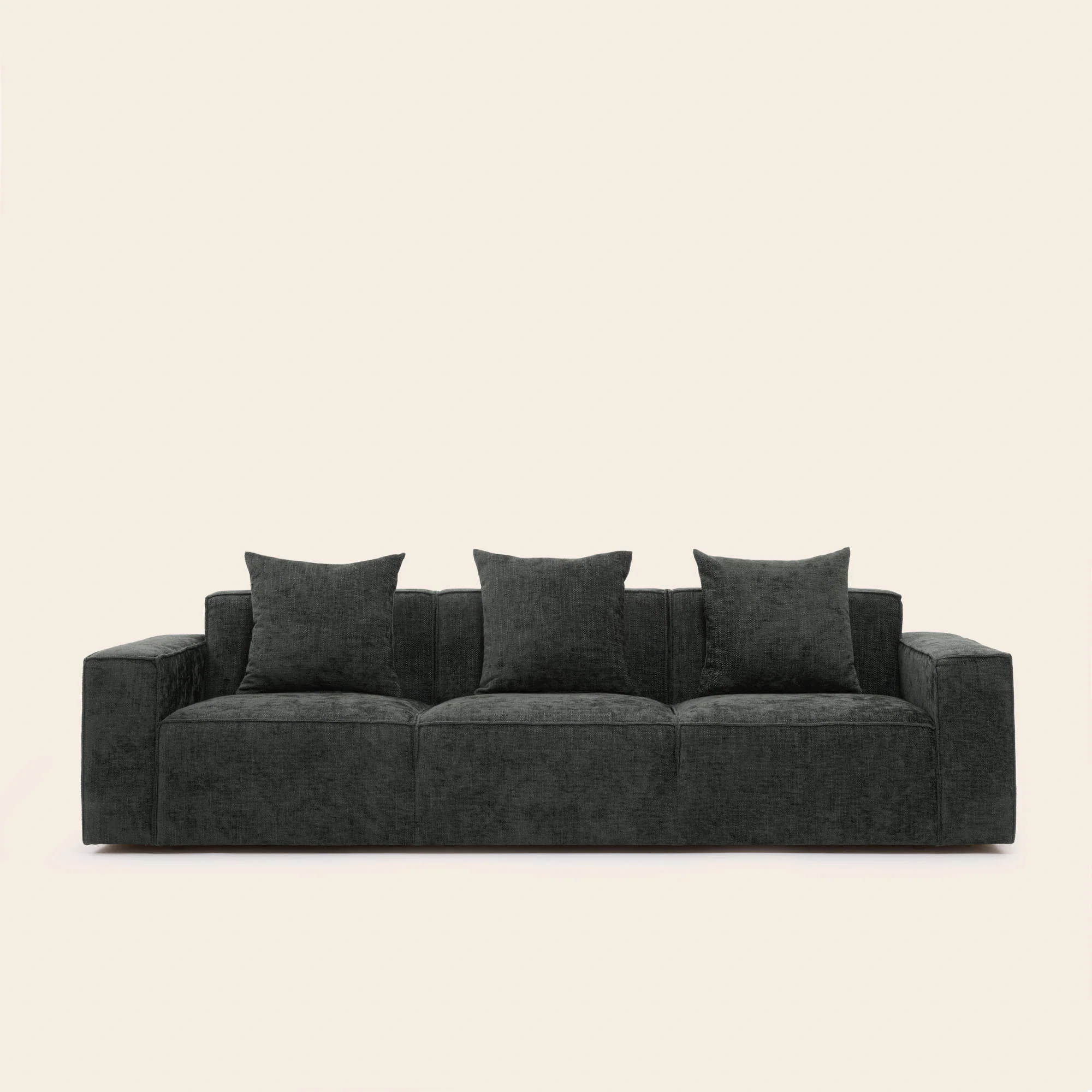 Le canapé Dyonis séduit par son design cubique épuré, parfaitement équilibré entre lignes architecturales et douceur enveloppante. Habillé d’une chenille duveteuse au fini subtilement patiné, il dégage une chaleur intime et une élégance naturelle. Ses reflets délicats apportent une profondeur visuelle pleine de charme, qui réchauffe l’ambiance.