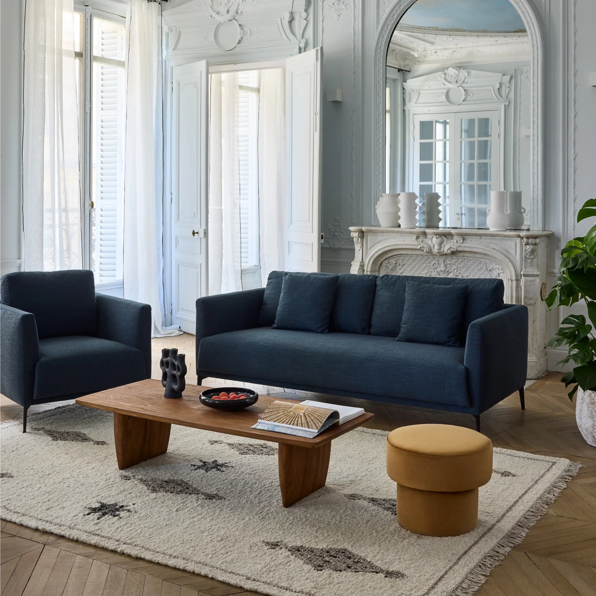 Le canapé Odelle séduit par ses lignes épurées et son style intemporel. Son revêtement en tissu natté texturé apporte une touche raffinée et un confort visuel et tactile unique.