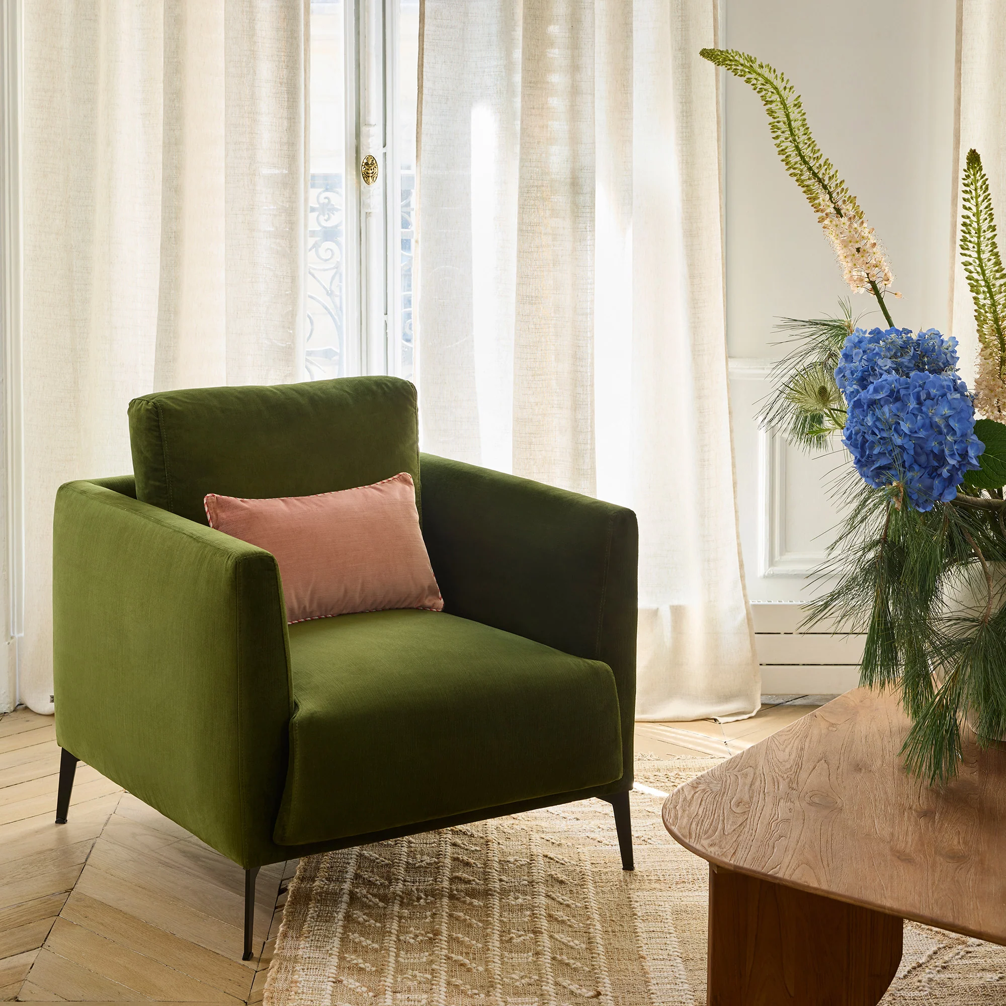 Le fauteuil Odelle en velours est beau par ses lignes d’une intemporelle simplicité. Il a été imaginé pour que tous les intérieurs trouvent un caractère singulier.