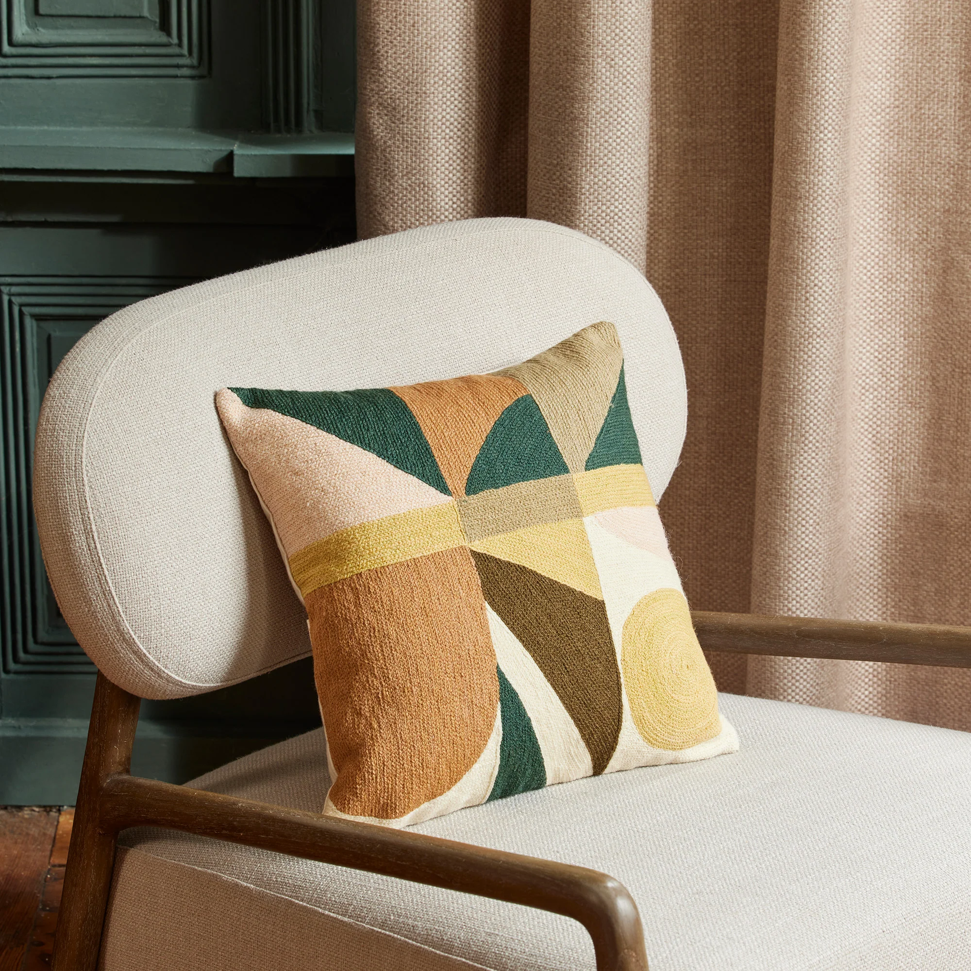 Housse de coussin FERGUS sables et vert