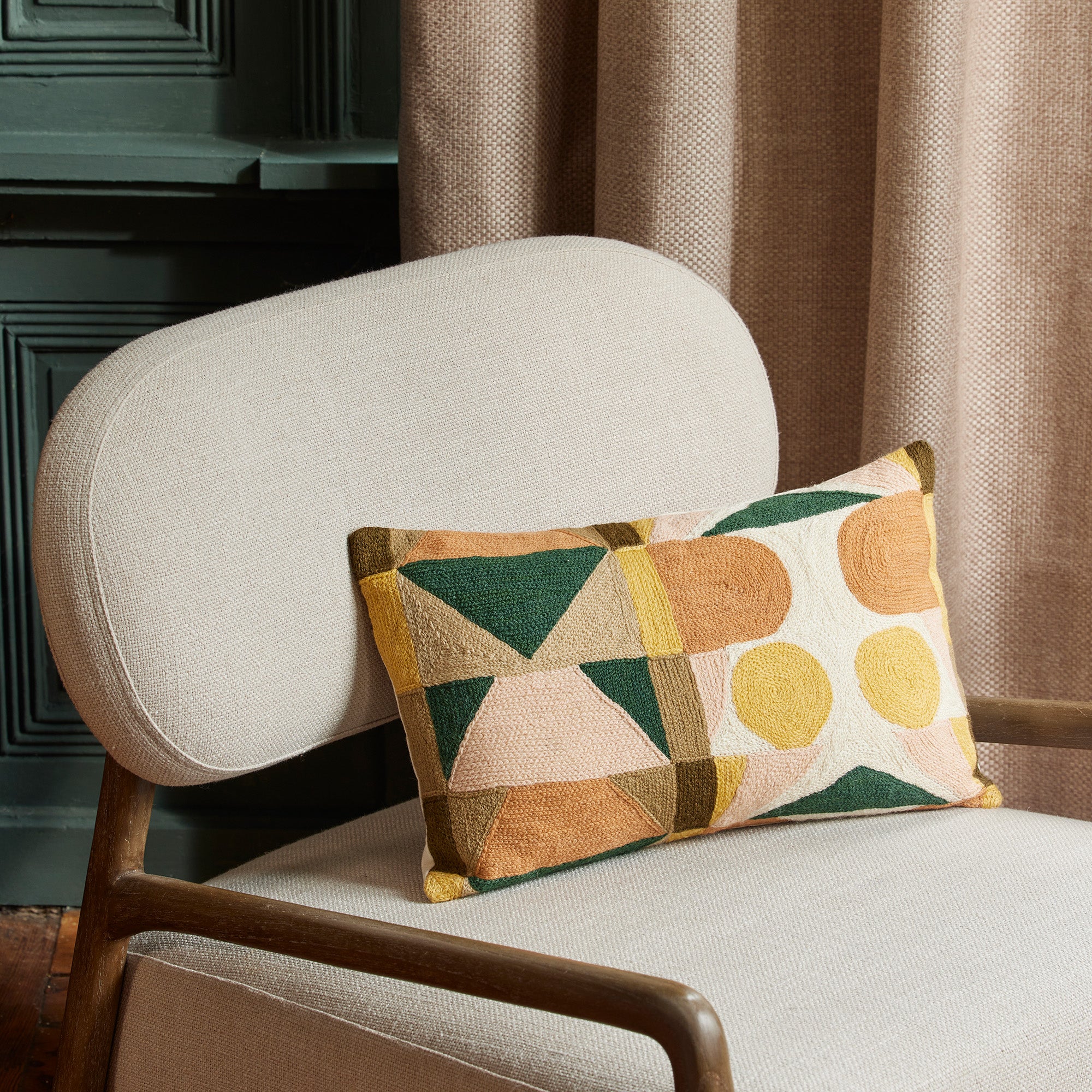 Housse de coussin NIKOLLA sable et vert