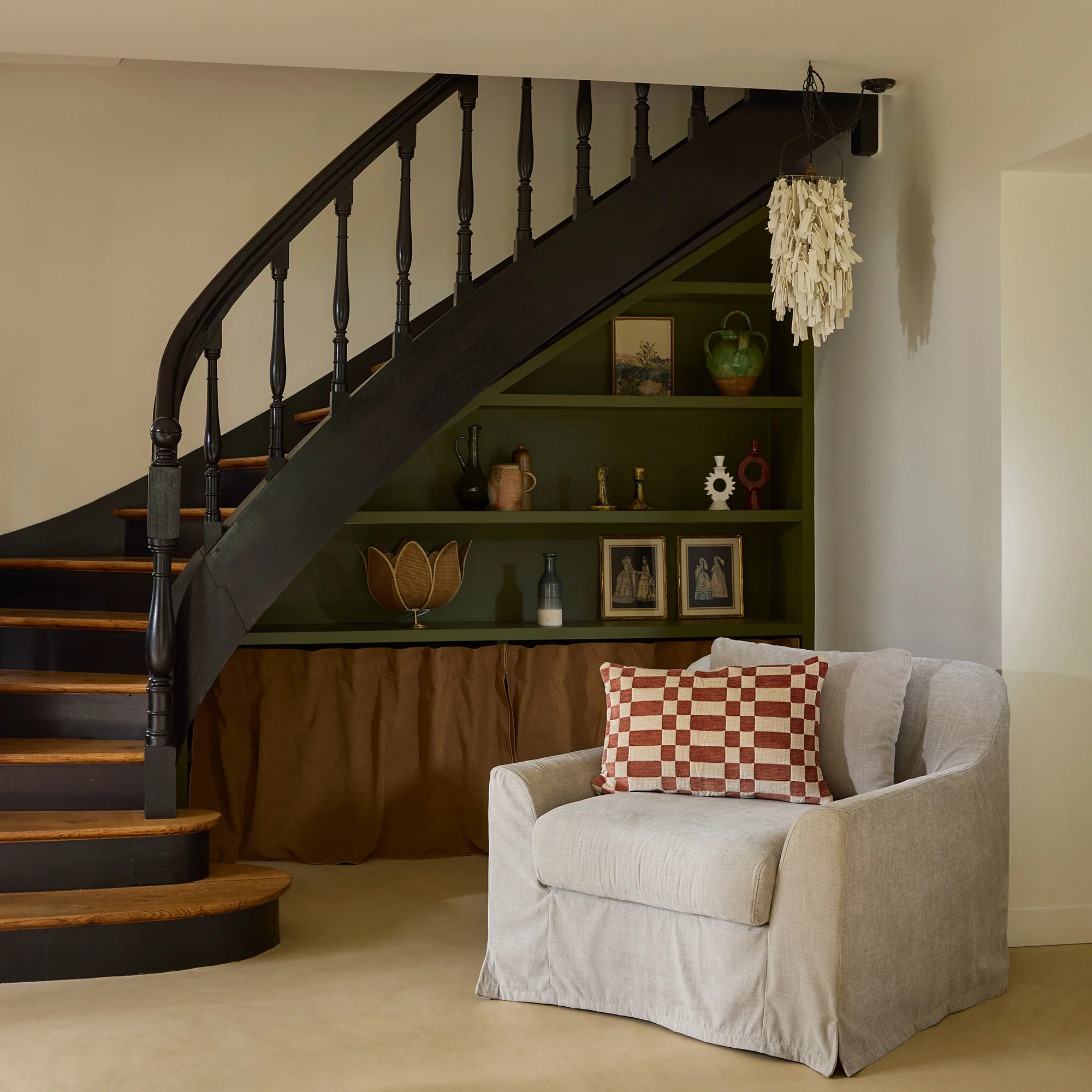 La housse de coussin Tcheky, avec son motif damier revisité, célèbre une esthétique graphique audacieuse, tout en cultivant un sens absolu du confort. Sur un jacquard de chenille dense et généreux, le motif prend vie à travers un subtil jeu de carrés irréguliers, presque en mouvement, qui lui offre une modernité vibrante et pleine d’énergie