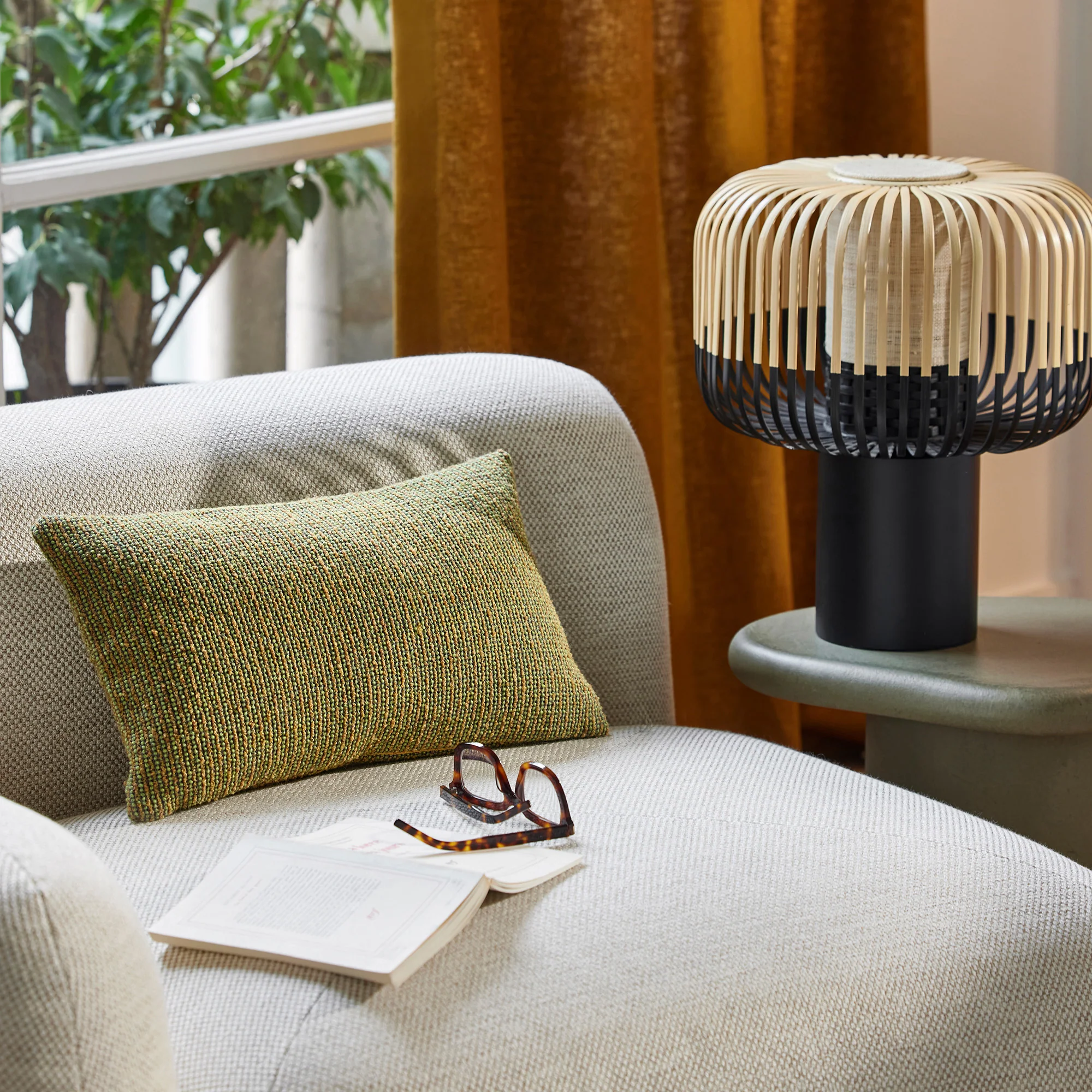 -70%Housse de coussin TEORA vert et moutarde—