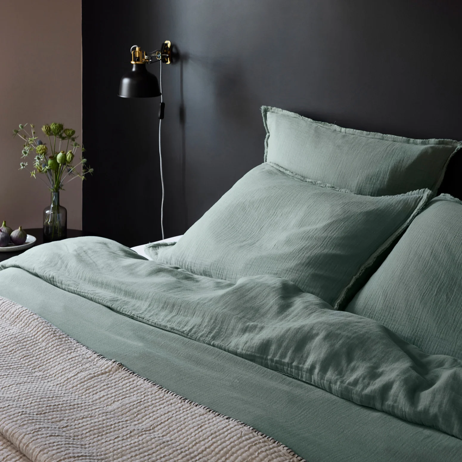 Très agréable au contact de la peau, le linge de lit Lou vert sauge en gaze de coton lavé vous assurera un sommeil réparateur.