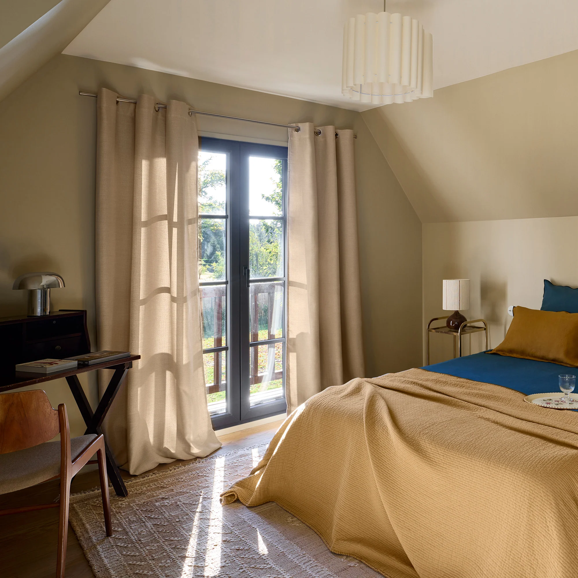 Occultant à 80%, le rideau Lina naturel ne laissera passer que très peu de lumière dans votre pièce. On l'aime pour sa légèreté et sa fluidité.