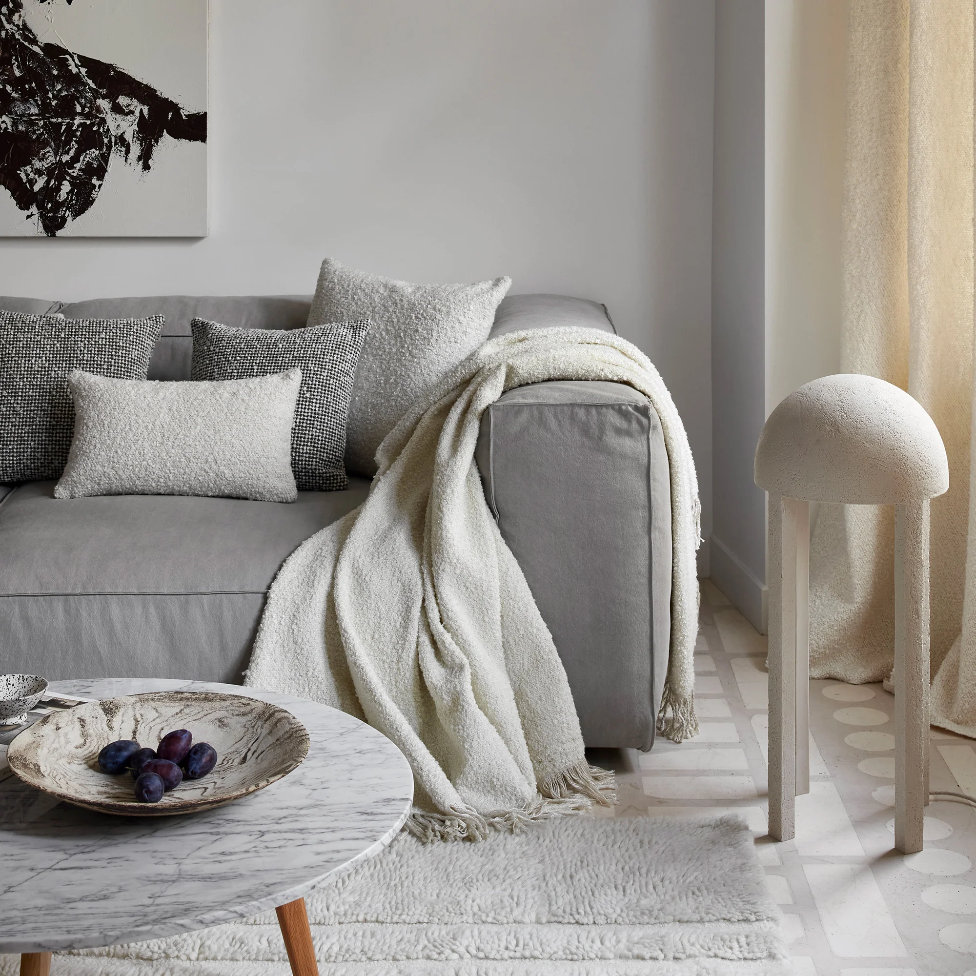 Le plaid Luciano, avec son tissage bouclette et sa finition frangée, nous enveloppe de douceur en toute décontraction.
