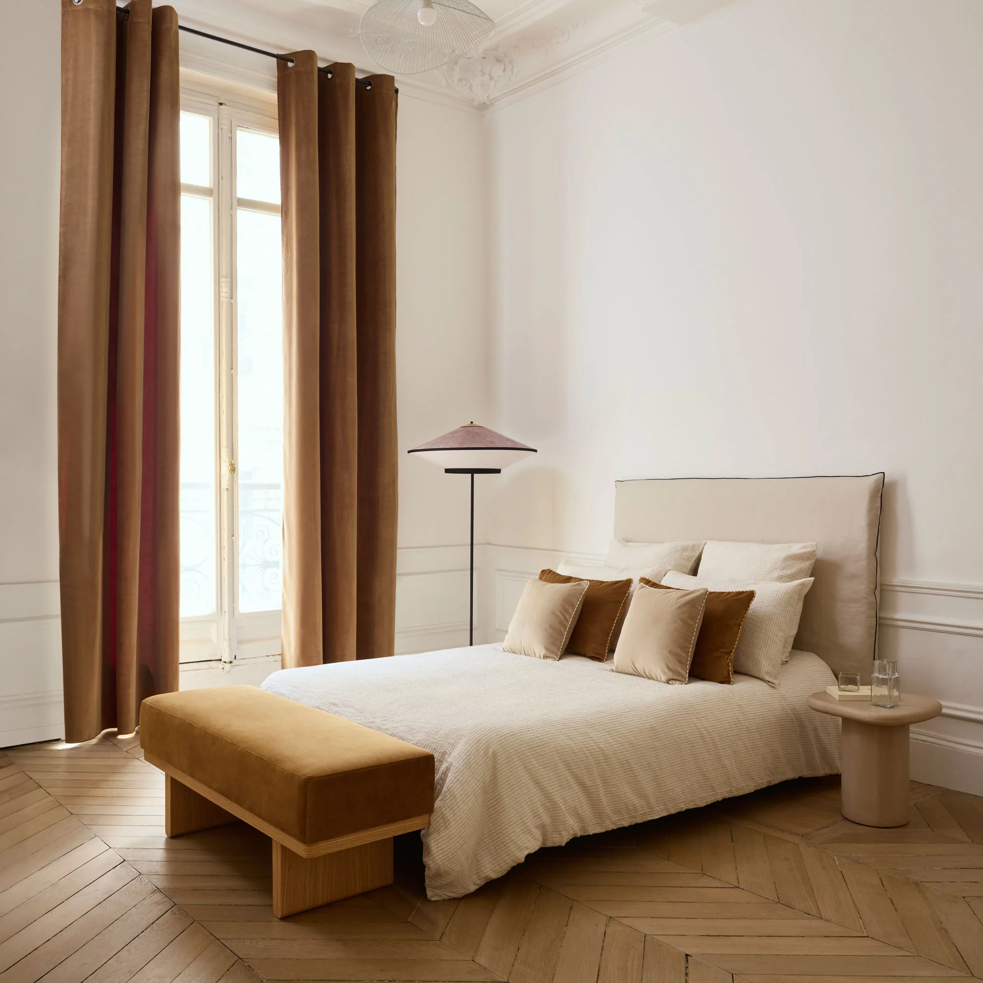Notre nouvelle gamme de rideaux en velours à œillets dorés Dalila, est une déclaration d’élégance. Dans un esprit boudoir, il conjugue chaleur et charme précieux, en habillant l’espace de sa subtile brillance satinée. Il crée une ambiance intime, accueillante, sophistiquée, incontournable pour celles et ceux qui aiment le beau, le doux et l’intemporel.